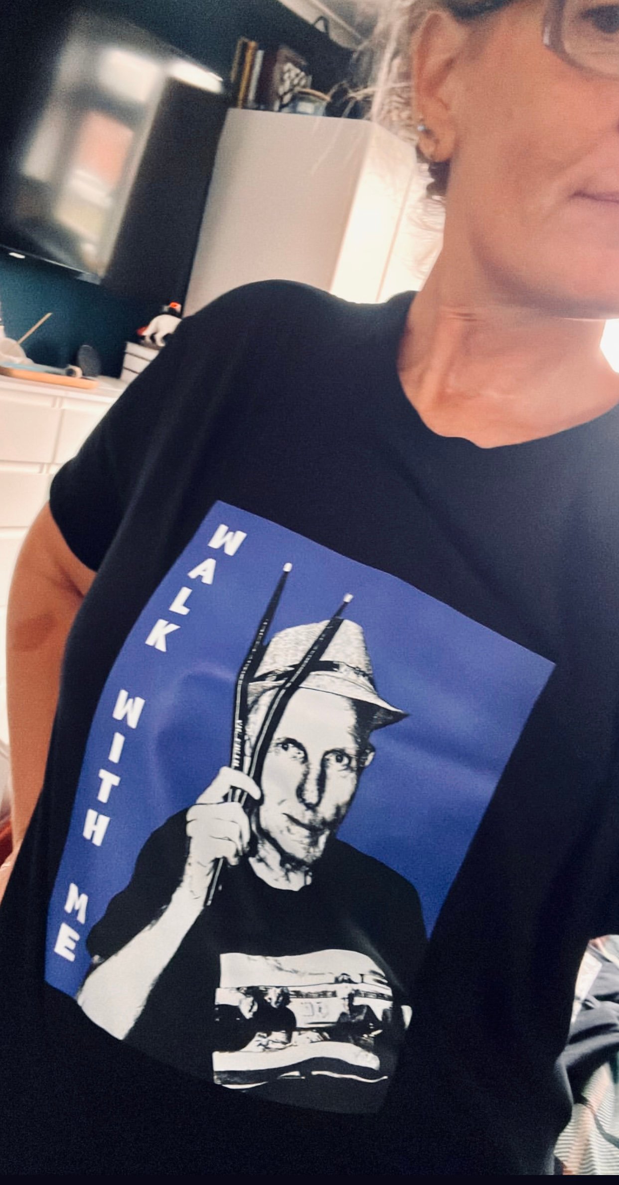Show your support with the Walk With Me – BLACK AND BLUE T-shirt, featuring the one and only Dave Wells.